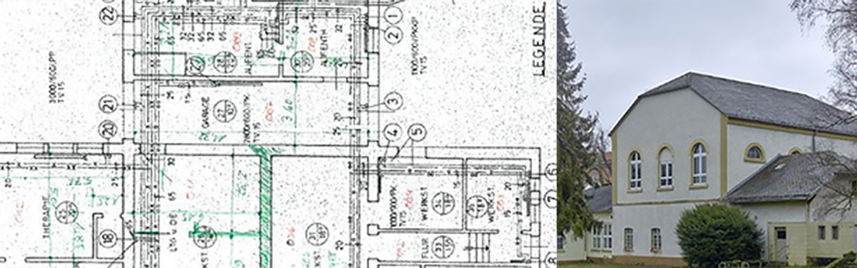 Architekturvisualisierung ist ein wichtiger Teil in der Welt der 3D-Computer Grafik. Für Neubauten stehen für die virtuelle Darstellung oft bereits CAD-Modelle der Gebäude digital zur Verfügung und auch die Oberflächen/Materialien der Gebäude sind bereits durch Planungsunterlagen vorgegeben. Bei der Rekonstruktion historischer Bauten muss für das Modell auf Baupläne und für die Oberflächen auf Referenzfotos des ursprünglichen Gebäudes oder ähnlicher Bauten zurückgegriffen werden. Fehlende Informationen müssen sinnvoll und begründet ergänzt werden. Die typischen Herausforderungen und Lösungsmöglichkeiten bei der virtuellen 3D-Rekonstruktion historischer Gebäude werden im Rahmen dieser Abschlussarbeit aufgezeigt und analysiert. Als prototypisches Praxisprojekt dient die Nachbildung eines Werkstadtgebäudes des Idsteiner Kalmenhofs, für das sowohl Pläne als auch Fotografien zur Erzeugung des Modells zur Verfügung stehen.