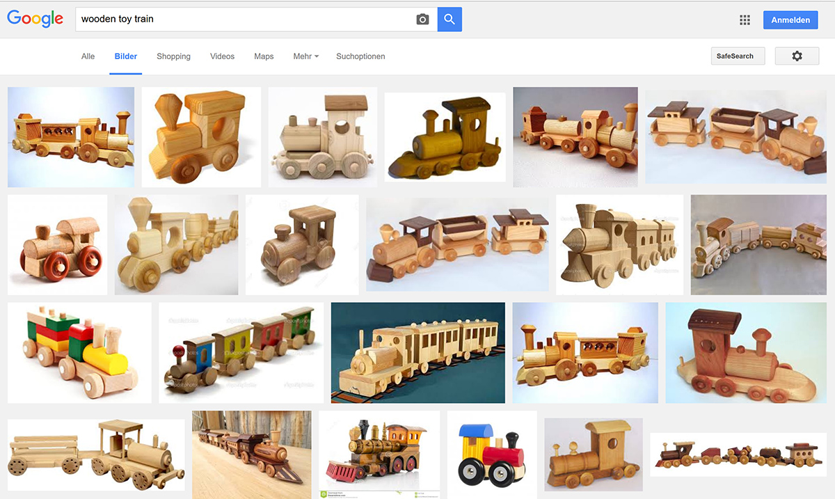Eine Suche im Internet nach Holzspielzeug und insbesondere hölzernen Zügen gibt einen ersten Eindruck, wie Spielzeugzüge aus Holz aussehen können und in welchem Detailgrad die einzelnen Teile des Zuges geschnitzt sind.